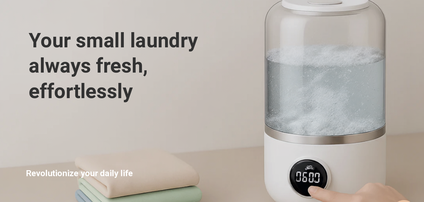It's designed to excel at its specialty: quickly and hygienically cleaning small items and delicate fabrics. Its targeted rotation effectively cleans light everyday soiling. For tougher stains or heavily soiled laundry, a traditional washing machine is more suitable. Consider it the perfect complement to, not a replacement for, your main washing machine.